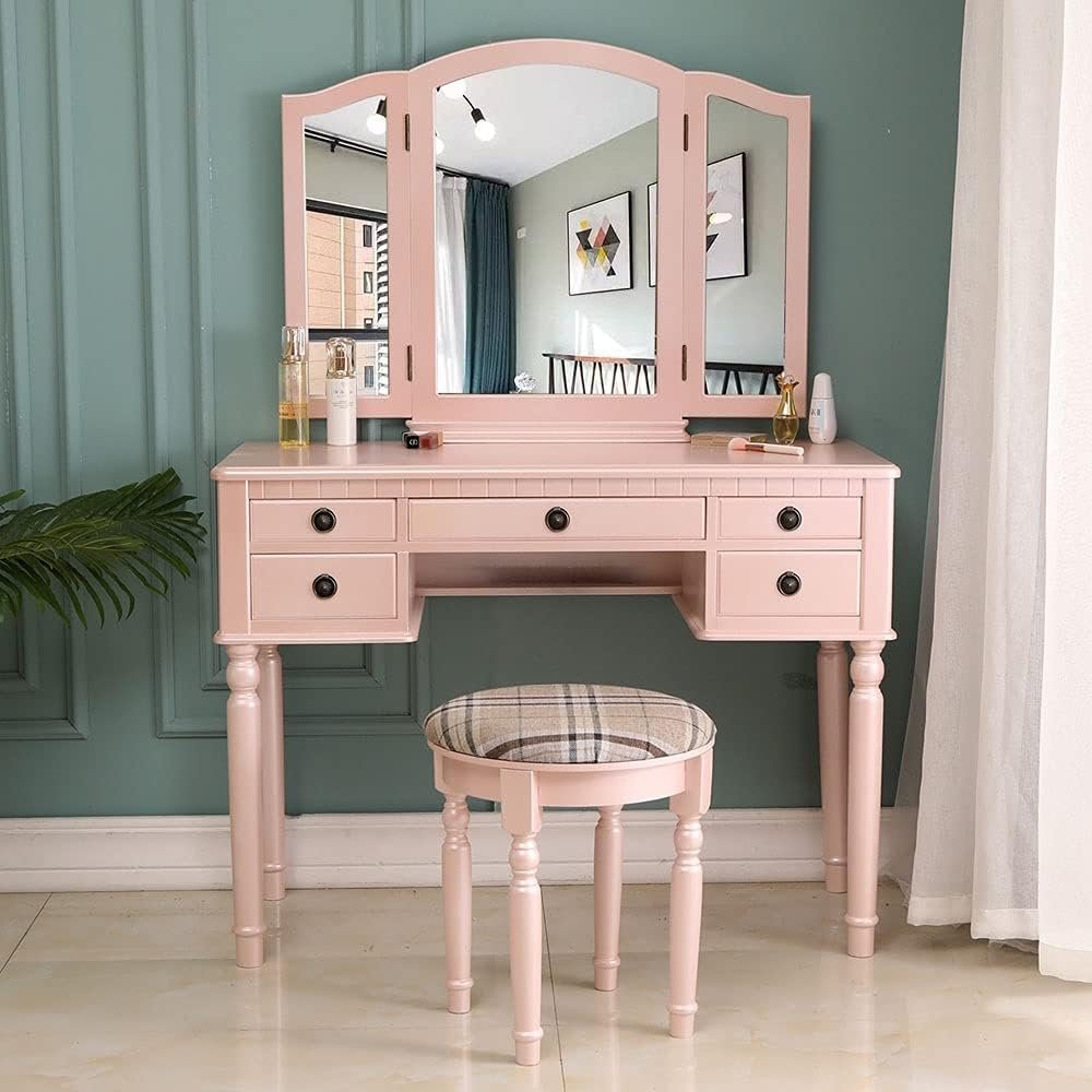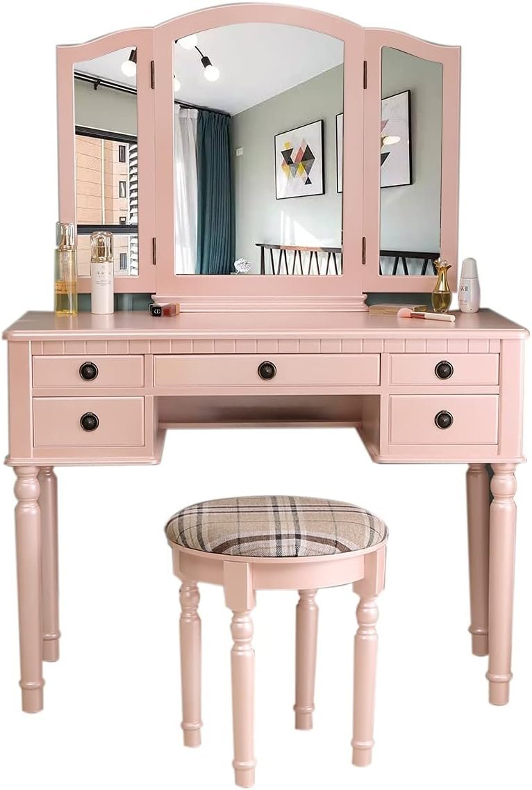 Dresser Three-Fold Square Drawers Roman Column Dressing Table with Dressing Stool Fluorescent in Stock